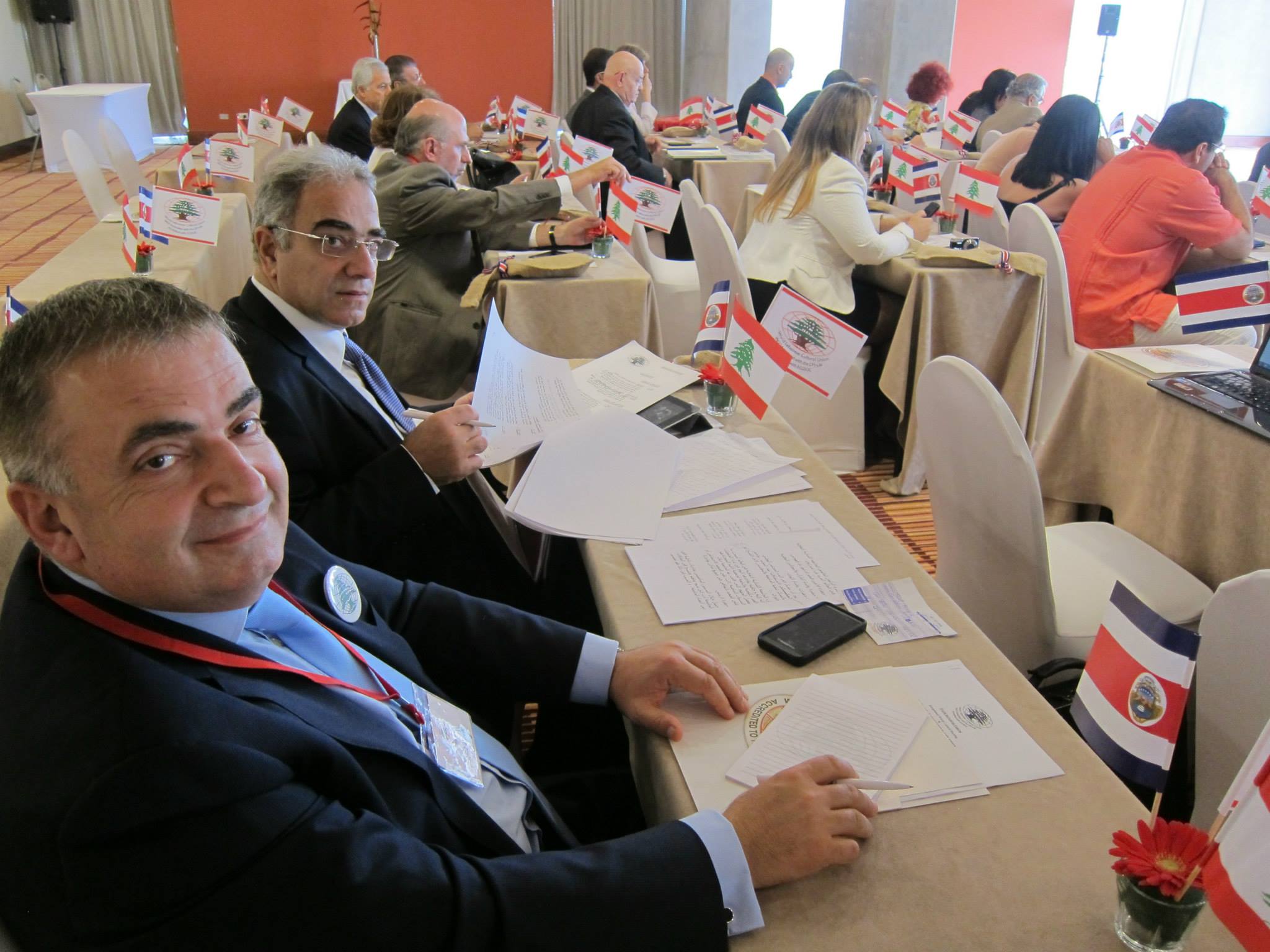 افتتح الإجتماع بالنشيد الوطني لكوستاريكا واللبناني وبالوقوف دقيقة صمت عن روح الرئيس العالمي الأسبق الراحل أنور خوري.