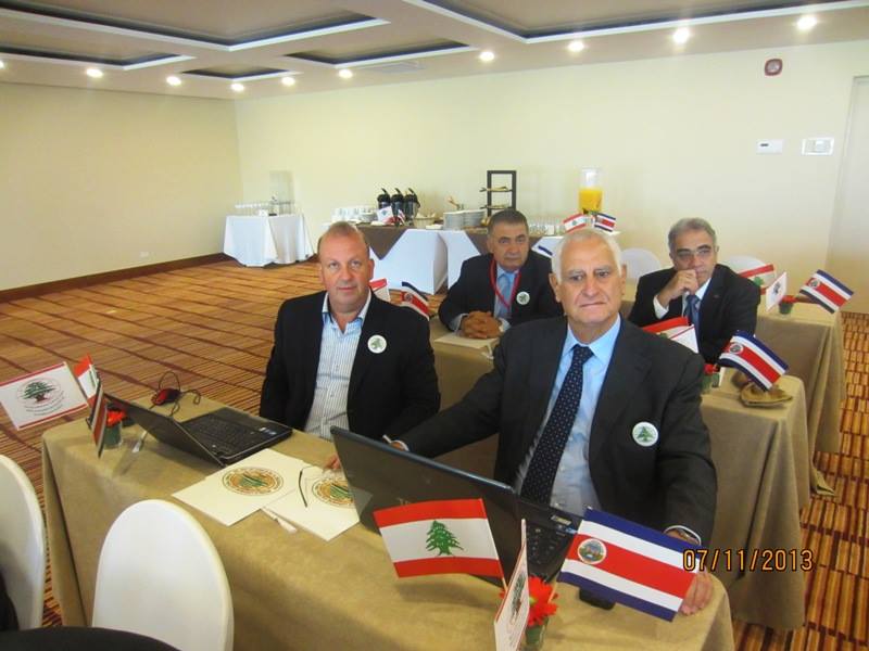 افتتح الإجتماع بالنشيد الوطني لكوستاريكا واللبناني وبالوقوف دقيقة صمت عن روح الرئيس العالمي الأسبق الراحل أنور خوري.