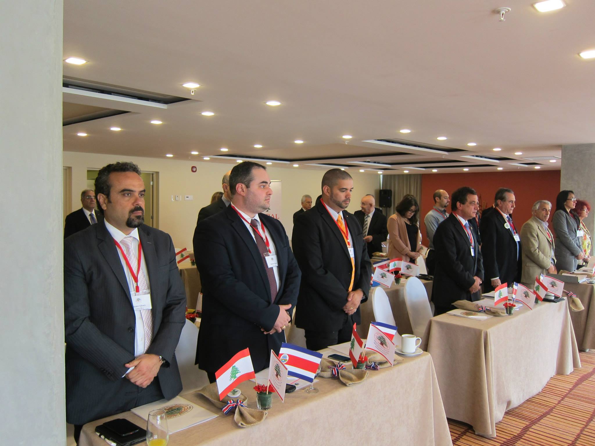 افتتح الإجتماع بالنشيد الوطني لكوستاريكا واللبناني وبالوقوف دقيقة صمت عن روح الرئيس العالمي الأسبق الراحل أنور خوري.