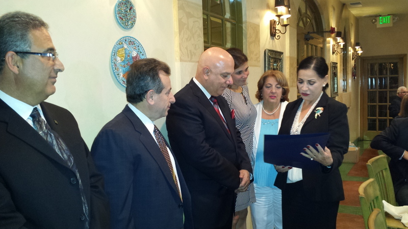 في الختام، قدمت أميرة مطر شهادة فخرية للرئيس أليخندرو خوري فارس من عمدة بلدية لوس أنجلس “اريك غارسيتي” يهنئه فيها بإنتخابه رئيساً. ثم، قدم الرئيس دروعاً تذكارية تقديراً لعمل أعضاء الجامعة أميرة مطر، سوزان نحاس، فريد مكارم، ناجي ضومط، إدوار عبدالكريم وسولي أسمر.