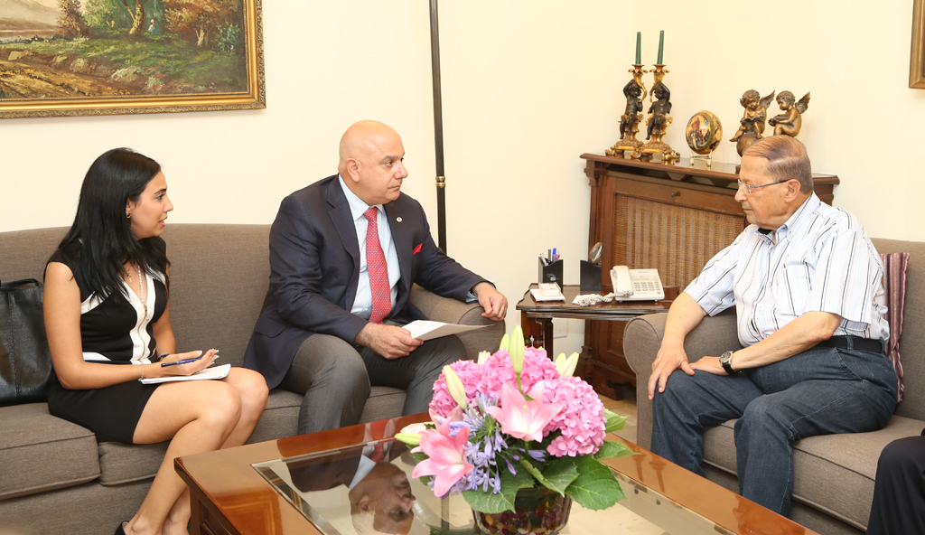 زار وفد الجامعة اللبنانية الثقافية في العالم صباح يوم ۳۰ تموز ۲۰۱٤، رئيس تكتل «التغيير والاصلاح» النائب ميشال عون في الرابية وبحث معه في أوضاع الإنتشار اللبناني.