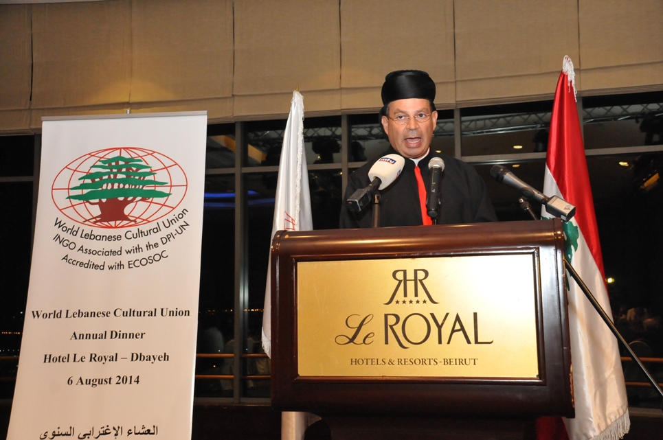 The WLCU headed by Alejandro Kuri Pheres organized its annual dinner in the hotel “Le Royal” Dbayeh on Wednesday 6 August 2014, during which the former WP Eid Chedrawi was honored, in the presence of several political, social, diplomatic and media personalities as well as to WLCU officers and members and Lebanese Emigrants.