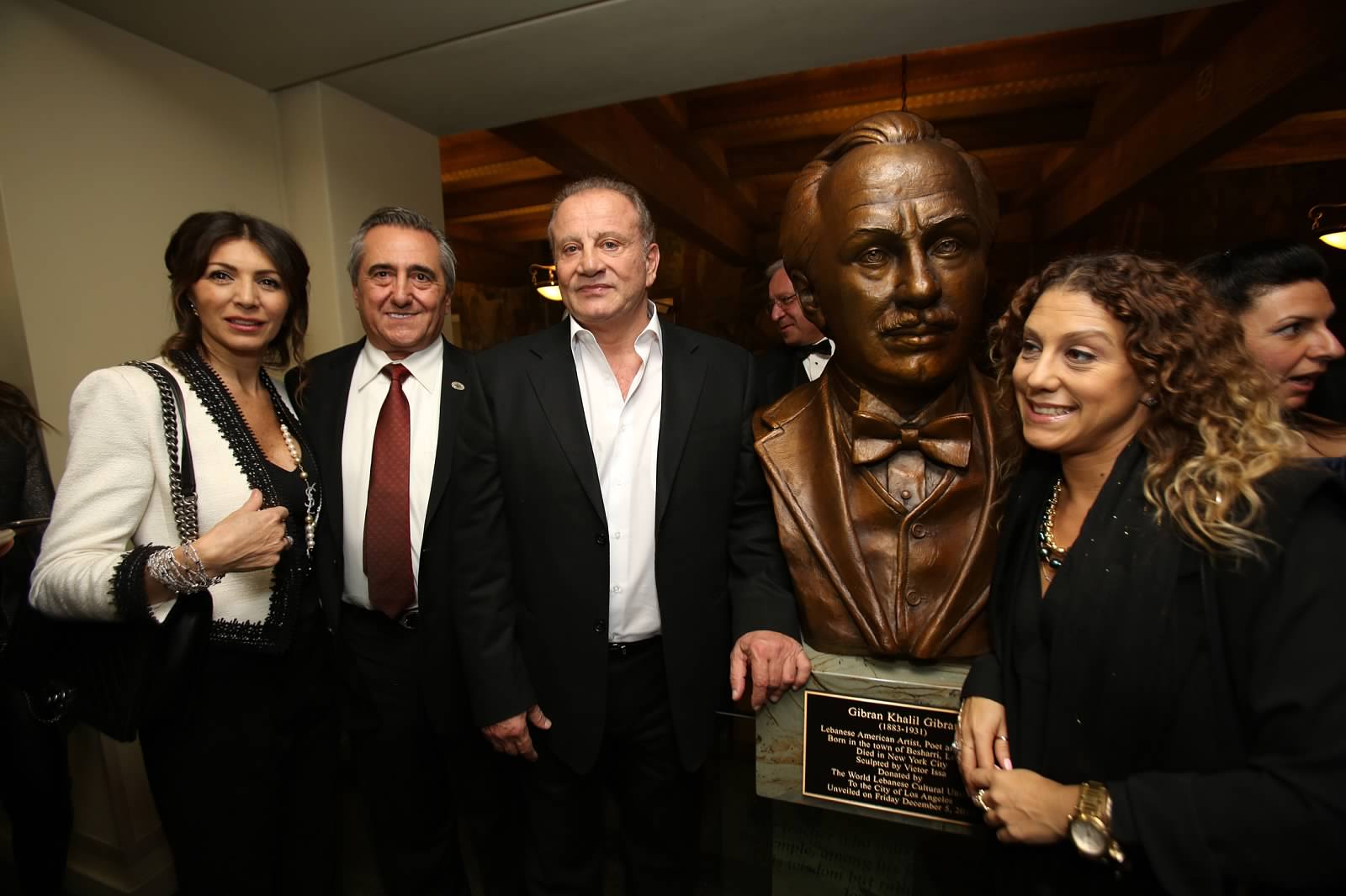 من ناحية أخرى، وبدعوة من الجامعة اللبنانية الثقافية في العالم في لوس أنجلس وكاليفورنيا، أزيح الستار عن تمثال جبران خليل جبران الذي قدمته الجامعة إلى مدينة لوس أنجلس في المكتبة العامة الرئيسية للمدينة. حضر الحفل النائب سامي الجميل الذي لبّى دعوة الإفتتاح بمناسبة وجوده في المدينة، أمين مكتبة المدينة جون سزابو، أعضاء مجلس مدينة لوس أنجلس ميتش أوفاريل وطوم لابونج، عضو مجلس المدينة السابق دنيس زين، الرئيس العالمي للجامعة أليخندرو خوري فارس، القاضي جيمس كعدو، عمدة مقاطعة لوس أنجلس جيم مكدونل وأكثر من ٢۵٠ شخص. وقد أقيم للمناسبة حفل إستقبال تخلله كلمات لمسؤولين من المدينة والجامعة.