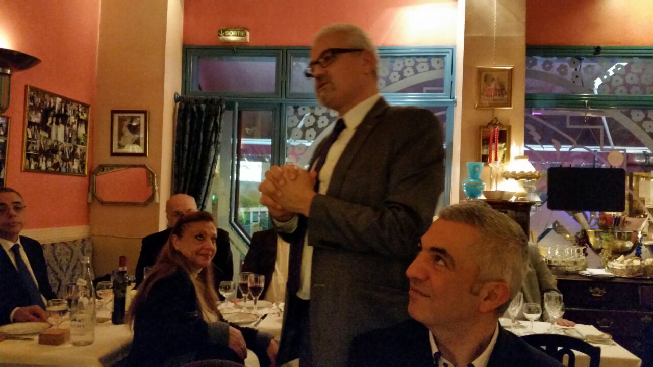 كما أقام المجلس الوطني في فرنسا حفل عشاء على شرف الرئيس العالمي، حضره القائم بالأعمال غادي خوري، السفير خليل كرم، راعي أبرشية فرنسا للموارنة المونسنيور مارون ناصر الجميل، مطران الروم الأورثودكس اغناطيوس الحوشي، ممثل المجلس الشيعي الأعلى في فرنسا سماحة السيد حسن الحكيم، الملحق العسكري في السفارة اللبنانية في باريس العميد جورج نادر، نائب الرئيس العالمي لأوروبا روجيه هاني، رئيس لجنة الإقتصاد والأعمال في الجامعة أنطوان منسى وأعضاء المجلس.