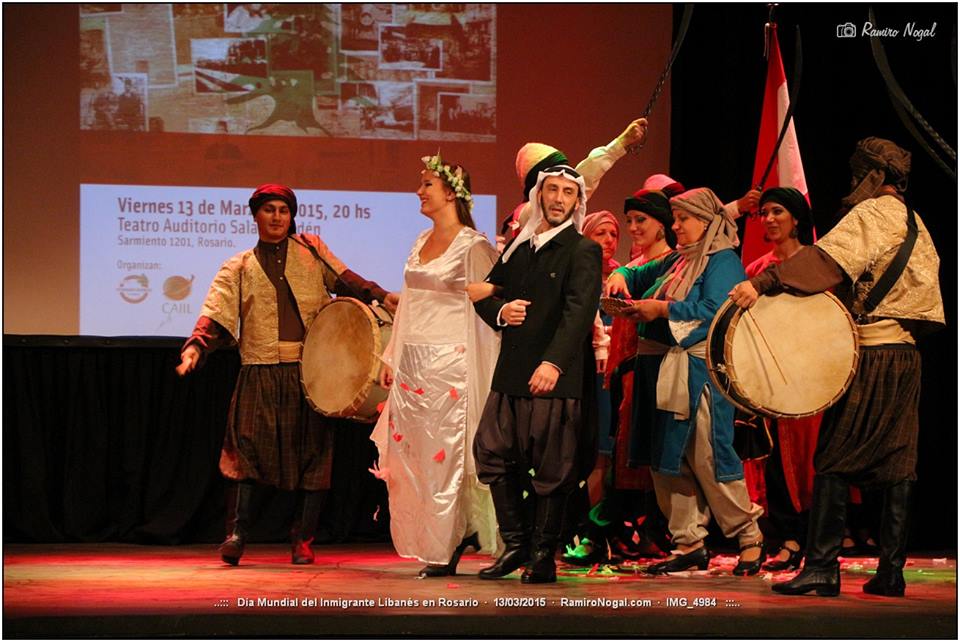Families who recently obtained Lebanese citizenship for having “honored the memory of his grandfather” were granted recognition. Lebanese immigrants had their major role, since they were given a present and announced the year of arrival. With almost 90 years Antonia Hanna, who arrived in 1929 became Lebanon’s longest residence in Argentina. The Acting Saufar Lubnan, recreation Lebanese wedding Firqat Al Arz, together with Firqat Abu and Emm, highlighted the celebration. “The outcry of Lebanese Immigrant” performed by Diego Fernandez Abuchacha thrilled the audience. The historical recreation of CAIIL with the unpublished video of the visit of Lebanese President Camille Chamoun, 1954, surprised many. The mood was also present with Charlie Chaplin the Immigrant. More than 350 people who joined us are a clear example of love for Lebanon to live here. The Lebanese Rosary Society by the JUCAL and National UCAL, with its president Nestor Hage, are immeasurable support, hard work being conducted by our Research Center on Lebanese Immigration.