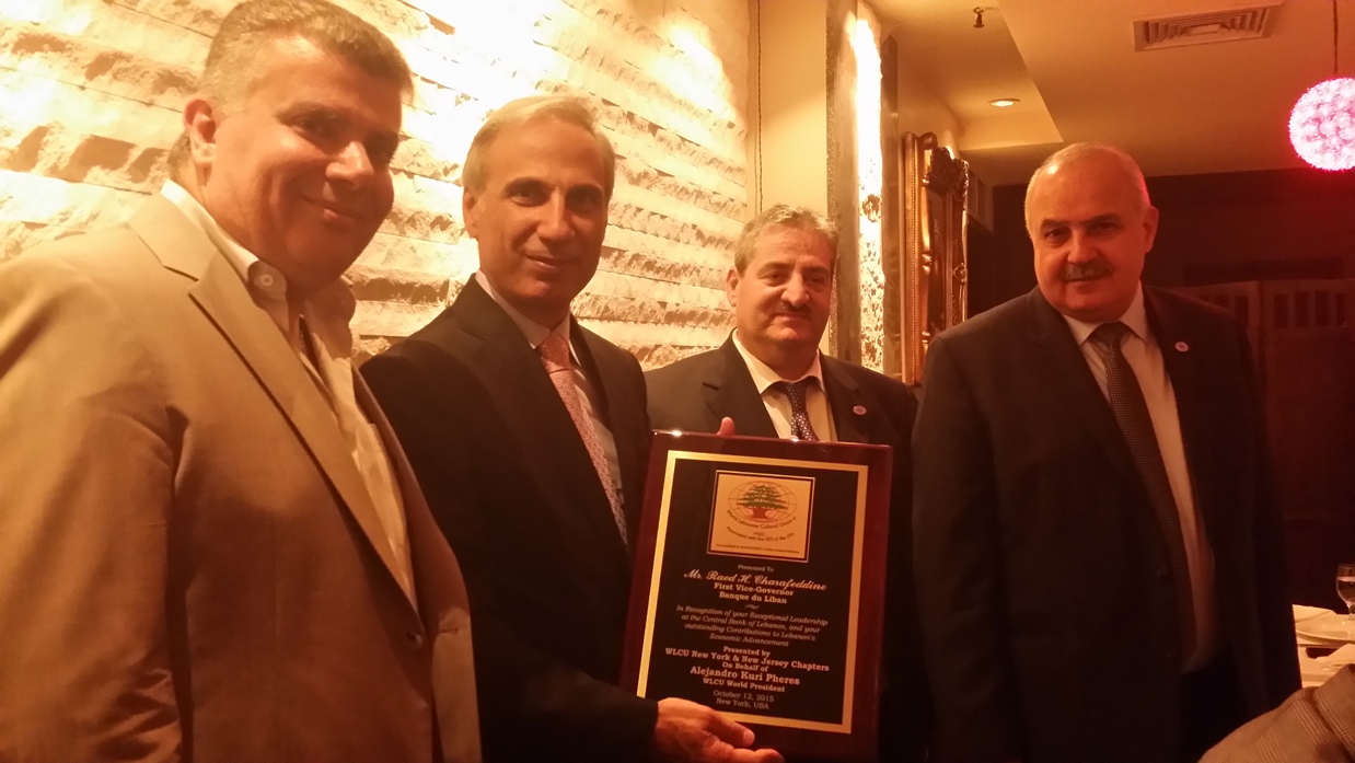 بمناسبة زيارته لمدينة نيويورك، كرمت الجامعة اللبنانية الثقافية في العالم في مدينتي نيويورك ونيوجرسي نائب حاكم مصرف لبنان الدكتور رائد شرف الدين في حفل عشاء أقامه الفرعان مساء الإثنين بتاريخ ۱۲ تشرين الأول على شرفه، بحضور عدد من مسؤولي وأعضاء الجامعة ووجهاء الجالية اللبنانية في المدينتين.