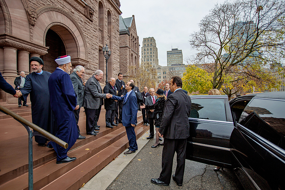 بدأت المراسم بتوقيع القائم بالأعمال على سجل التشريفات، بحضور ممثل الوزير فرعون، ممثل الرئيس العالمي، رئيسة فرع تورونتو ليلى الحاج ومسؤولي الجامعة القاريين والمحليين، ثم انتقل الجميع لحضور إجتماع في مكتب رئيسة الحكومة بحثت فيه أمور الجالية، وتبادل فيه القائم بالأعمال وممثلة رئيسة الحكومة (لوجود رئيسة الحكومة في الصين) الهدايا التذكارية.