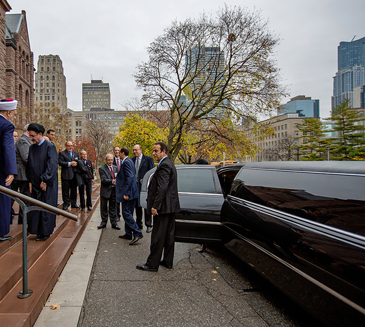 بدأت المراسم بتوقيع القائم بالأعمال على سجل التشريفات، بحضور ممثل الوزير فرعون، ممثل الرئيس العالمي، رئيسة فرع تورونتو ليلى الحاج ومسؤولي الجامعة القاريين والمحليين، ثم انتقل الجميع لحضور إجتماع في مكتب رئيسة الحكومة بحثت فيه أمور الجالية، وتبادل فيه القائم بالأعمال وممثلة رئيسة الحكومة (لوجود رئيسة الحكومة في الصين) الهدايا التذكارية.