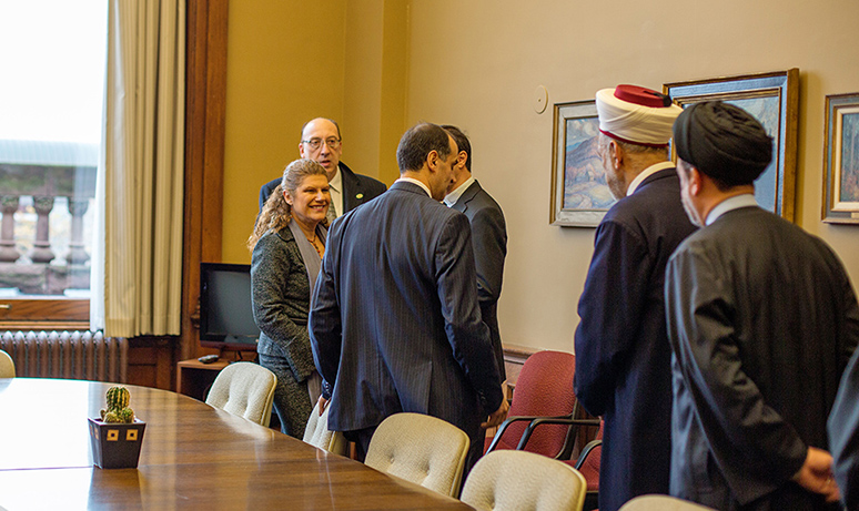 بدأت المراسم بتوقيع القائم بالأعمال على سجل التشريفات، بحضور ممثل الوزير فرعون، ممثل الرئيس العالمي، رئيسة فرع تورونتو ليلى الحاج ومسؤولي الجامعة القاريين والمحليين، ثم انتقل الجميع لحضور إجتماع في مكتب رئيسة الحكومة بحثت فيه أمور الجالية، وتبادل فيه القائم بالأعمال وممثلة رئيسة الحكومة (لوجود رئيسة الحكومة في الصين) الهدايا التذكارية.