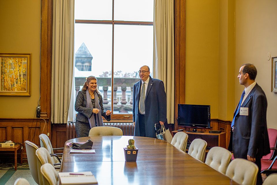 بدأت المراسم بتوقيع القائم بالأعمال على سجل التشريفات، بحضور ممثل الوزير فرعون، ممثل الرئيس العالمي، رئيسة فرع تورونتو ليلى الحاج ومسؤولي الجامعة القاريين والمحليين، ثم انتقل الجميع لحضور إجتماع في مكتب رئيسة الحكومة بحثت فيه أمور الجالية، وتبادل فيه القائم بالأعمال وممثلة رئيسة الحكومة (لوجود رئيسة الحكومة في الصين) الهدايا التذكارية.