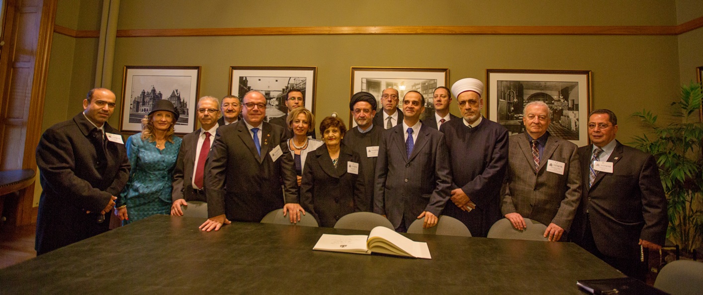 بدأت المراسم بتوقيع القائم بالأعمال على سجل التشريفات، بحضور ممثل الوزير فرعون، ممثل الرئيس العالمي، رئيسة فرع تورونتو ليلى الحاج ومسؤولي الجامعة القاريين والمحليين، ثم انتقل الجميع لحضور إجتماع في مكتب رئيسة الحكومة بحثت فيه أمور الجالية، وتبادل فيه القائم بالأعمال وممثلة رئيسة الحكومة (لوجود رئيسة الحكومة في الصين) الهدايا التذكارية.