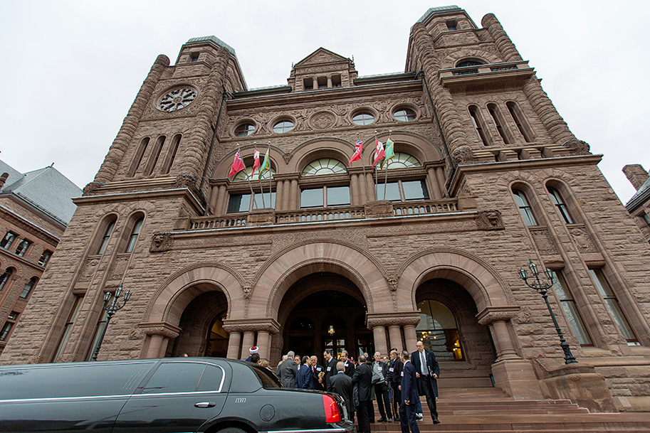بعده انتقل ممثلو الأحزاب في ولاية أونتاريو والوفود اللبنانية إلى الخارج حيث رفع القائم بالأعمال، وممثلو الطوائف، ومسؤولو الجامعة العلم اللبناني على الناصية المخصصة لذلك أمام البرلمان، على وقع النشيدين اللبناني والكندي.