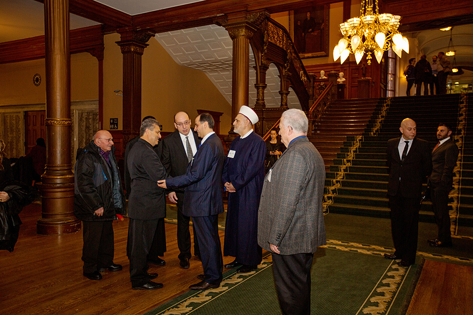بدأت المراسم بتوقيع القائم بالأعمال على سجل التشريفات، بحضور ممثل الوزير فرعون، ممثل الرئيس العالمي، رئيسة فرع تورونتو ليلى الحاج ومسؤولي الجامعة القاريين والمحليين، ثم انتقل الجميع لحضور إجتماع في مكتب رئيسة الحكومة بحثت فيه أمور الجالية، وتبادل فيه القائم بالأعمال وممثلة رئيسة الحكومة (لوجود رئيسة الحكومة في الصين) الهدايا التذكارية.