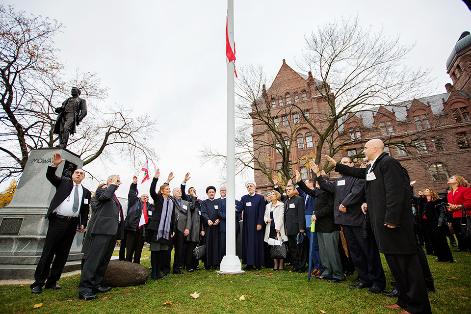 بعده انتقل ممثلو الأحزاب في ولاية أونتاريو والوفود اللبنانية إلى الخارج حيث رفع القائم بالأعمال، وممثلو الطوائف، ومسؤولو الجامعة العلم اللبناني على الناصية المخصصة لذلك أمام البرلمان، على وقع النشيدين اللبناني والكندي.