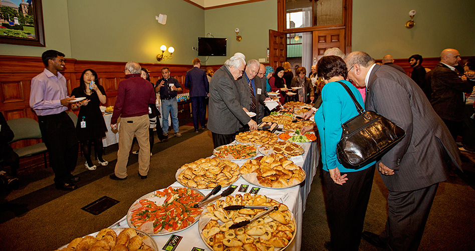 بدأت المراسم بتوقيع القائم بالأعمال على سجل التشريفات، بحضور ممثل الوزير فرعون، ممثل الرئيس العالمي، رئيسة فرع تورونتو ليلى الحاج ومسؤولي الجامعة القاريين والمحليين، ثم انتقل الجميع لحضور إجتماع في مكتب رئيسة الحكومة بحثت فيه أمور الجالية، وتبادل فيه القائم بالأعمال وممثلة رئيسة الحكومة (لوجود رئيسة الحكومة في الصين) الهدايا التذكارية.