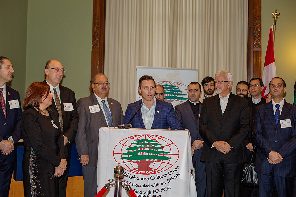 حضر الحفل الياس كساب ممثلاً وزير السياحة ميشال فرعون الذي تعذر عليه الحضور،  رئيس مكتب العلاقات الدولية في الجامعة القاضي جورج خوري ممثلاً الرئيس العالمي للجامعة أليخندرو خوري فارس، سماحة السيد نبيل عباس ممثل المجلس الإسلامي الشيعي الأعلى في كندا، الشيخ سعيد فواز ممثل دار الفتوى، الأب شربل أبو سمرا ممثلاً مطران كندا للموارنة مروان تابت، الأب ابراهيم حداد ممثلاً مطران كندا للروم الكاثوليك ابراهيم ابراهيم، الأب يوسف أبو شديد عن الرهبنة الأنطونية في كندا، الأب إيلي عساف من كنيسة سيدة لبنان، الأب جورج أيوب من كنيسة مار الياس للروم الأورثوذكس، ممثلون عن كنيسة الأرمن، سايد أبو شقرا ممثلاً الشيخ يوسف يحيا لطائفة الموحدين الدروز، الأمين العام القاري للجامعة إيلي جدعون، رؤساء الأحزاب والأندية والجمعيات اللبنانية، ووفودٌ غفيرةٌ من الجالية.