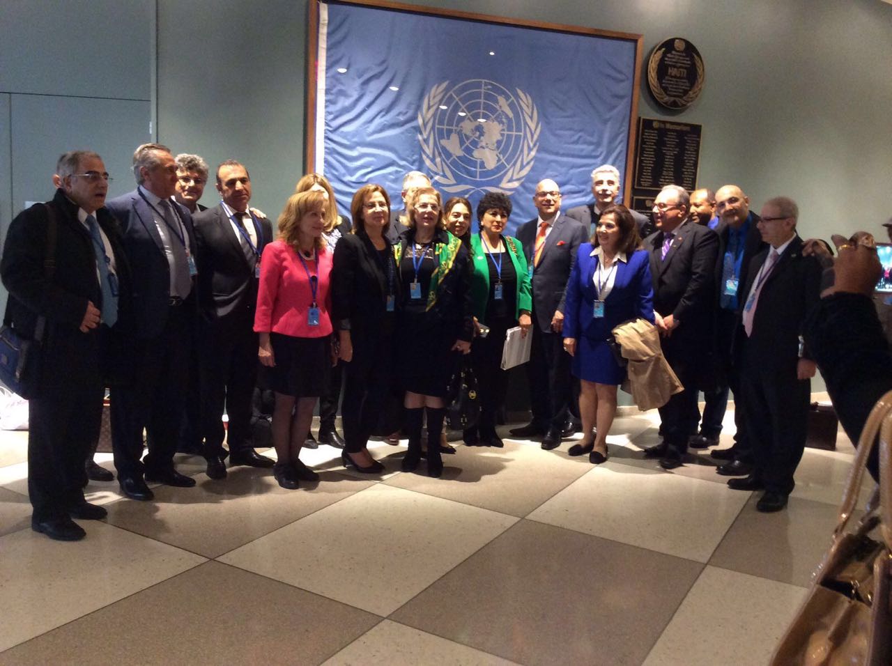 ولقد ضم الوفد الرئيس العالمي السابق للجامعة ومسؤول مكتب المنظمات غير الحكومية أنيسكرابيت، رئيس المجلس القاري للجامعة لأمريكا الشمالية ورئيس مكتب العلاقات الدولية القاضيجورج خوري، نائب رئيس مجلس أمناء الجامعة الياس كساب وممثلو الجامعة لدى المنظماتغير الحكومية أنطوانيت عطيه، ريما كاريو، نورا حجار،إيلي جدعون، سِد شدياق، روجيه هاني، وفد من تورونتو برئاسة رئيسة الفرع ليلى الحاج، وفد من نيويورك ونيو جرسي برئاسة فادي فرحات، وفد من سان فرانسيسكوبرئاسة نائب رئيس المجلس القاري خليل خوري، وفد من بوسطن برئاسة رئيس الفرع دافيدأبي شاكر، وفد من كاليفورنيا برئاسة رئيس مجلسها فارس وهبه.