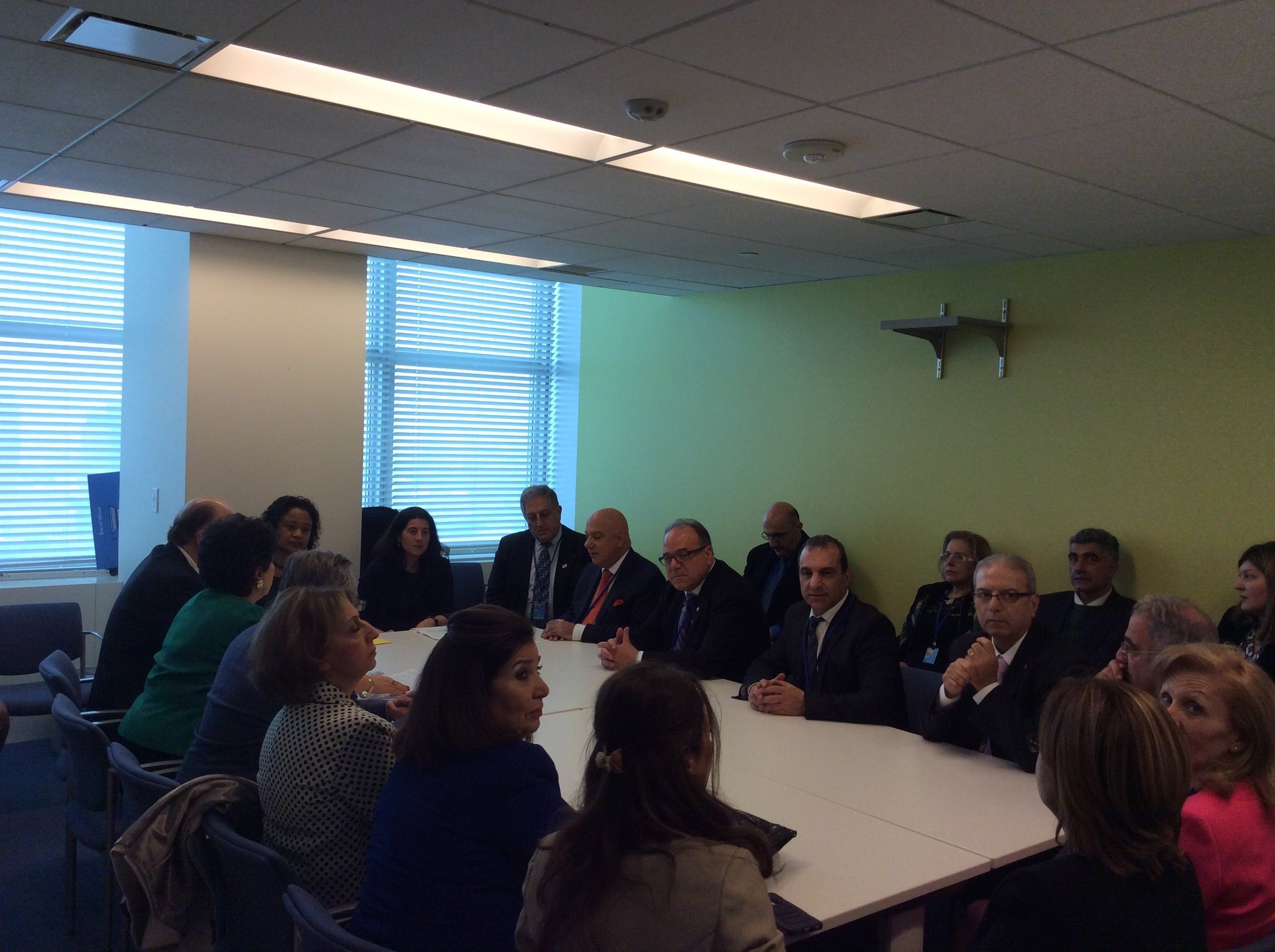 وقُبيل سفر الأمين العام بان كي مون إلى لبنان، اجتمع الوفد في مكتب الأمينالعام بالسيدة تانيا فيليسيو عن إدارة الشؤون السياسية بالأمانة العامة للأممالمتحدة ومسؤولين عن المفوضية السامية للأمم المتحدة لشؤون اللاجئين. وتحدثتبإسم الوفد رئيسة لجنة الشؤون الإجتماعية الدكتورة هنا رستم أرشيبالد، فشرحتالخطوط العريضة للوثيقة التي أعدتها الجامعة، وهي تلخص بما يلي: