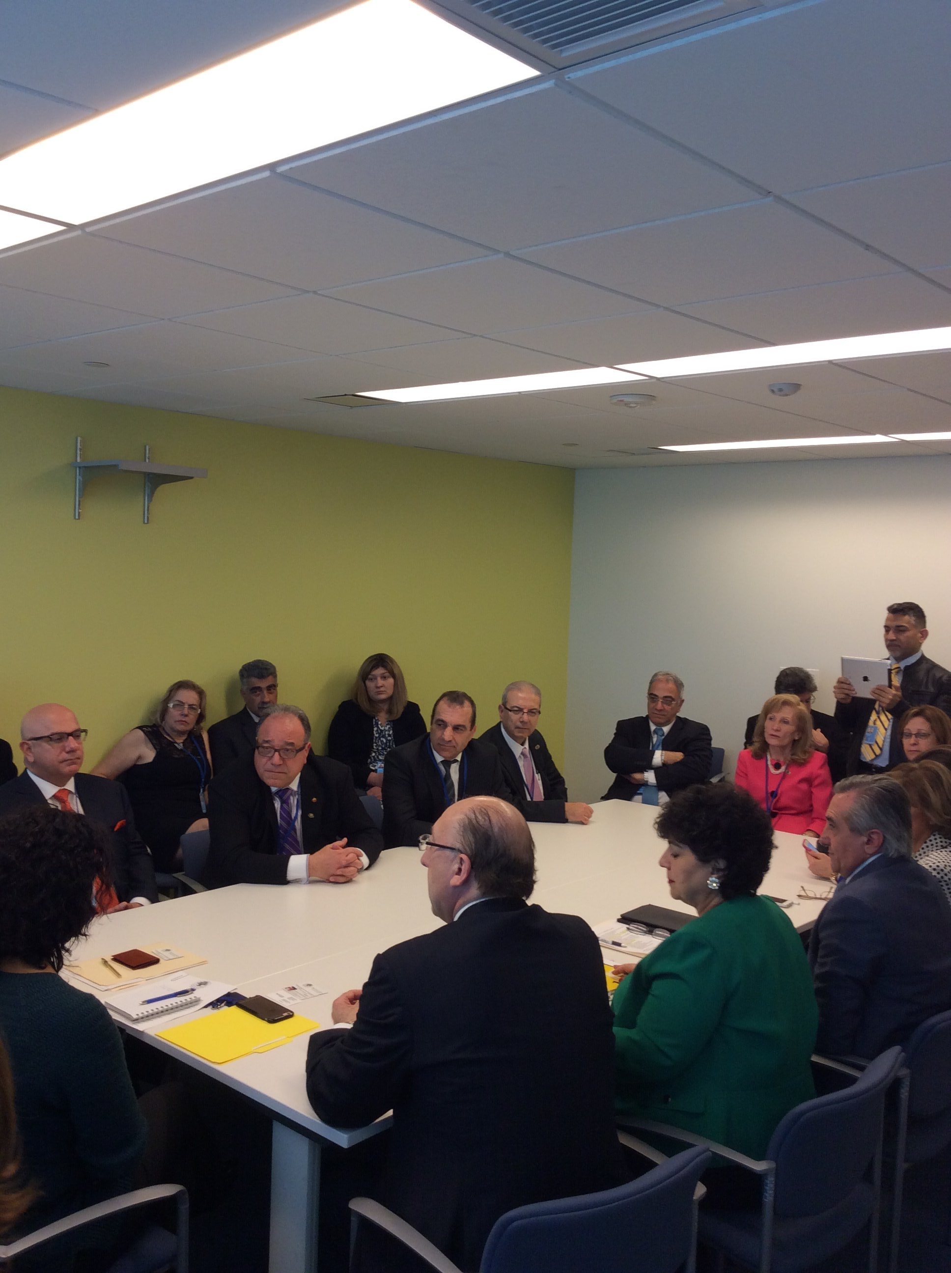 وفي نهاية اللقاء، الذي دام ٤٥ دقيقة، قدّمَ الرئيس العالمي كتاباً رسميّاًبإسم الجامعة لمساعدي الأمين العام موجَّهاً للسيد بان كي مون في هذا الخصوص.