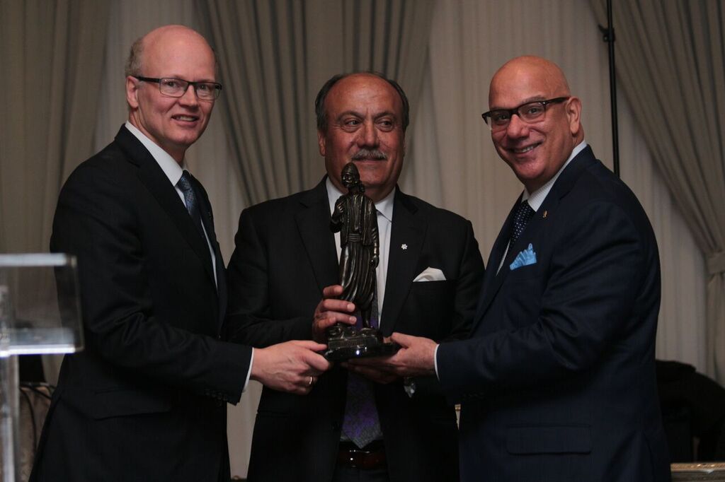 ثم كرم الرئيس العالمي أليخندرو خوري فارس رجال الأعمال اللبنانيين: وديع فارس، جميل شعيب، ومحمد الفقيه، وسلمهم تمثال المغترب تقديراً لنجاحاتهم وعطاءاتهم.