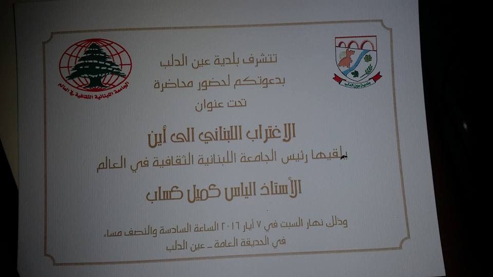 بعد الصلاة، لبى الرئيس العالمي دعوة بلدية عين الدلب لإلقاء محاضرة بعنوان “الاغتراب اللبناني إلى أين” في حديقة البلدية التي زينت بالعلم اللبناني وبعلم الجامعة.