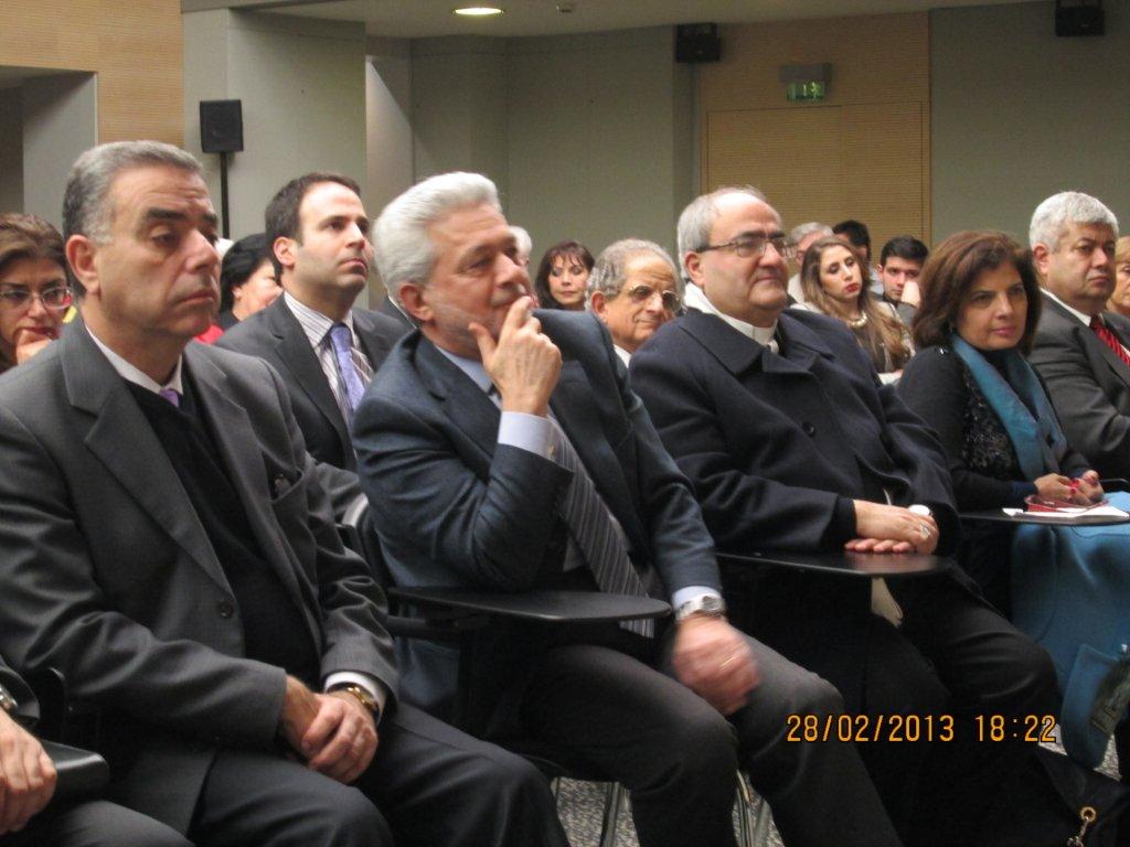 ولقد ساد اللقاء اجماع من الحاضرين على اهمية موضوع المحاضرة ومضمونها ولقد اختتمها المحامي ميشال قليموس بالتشديد على أهمية الحوار الوطني برئاسة فخامة رئيس الجمهورية اللبنانية العماد ميشال سليمان الذي يشكل بشخصه وادائه ضمانة لبنانية لتأمين التوازن والاعتدال والاستقرار في لبنان.